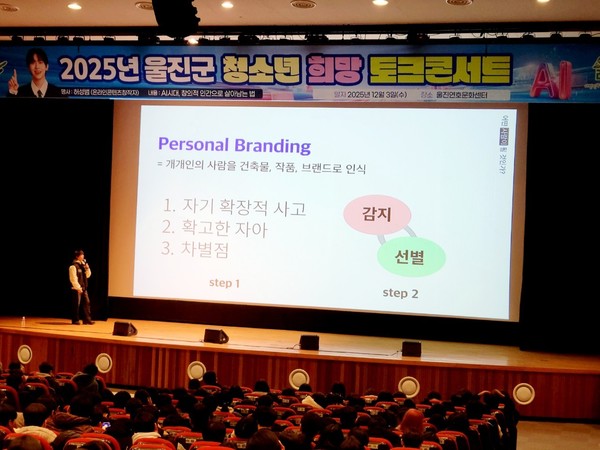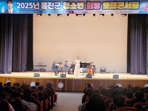울진군은 지난 12월 3일 울진연호문화센터에서 관내 중3과 고3 청소년 520여 명이 참여한‘2025년 울진군 청소년 희망토크콘서트’를 성공적으로 개최했다.